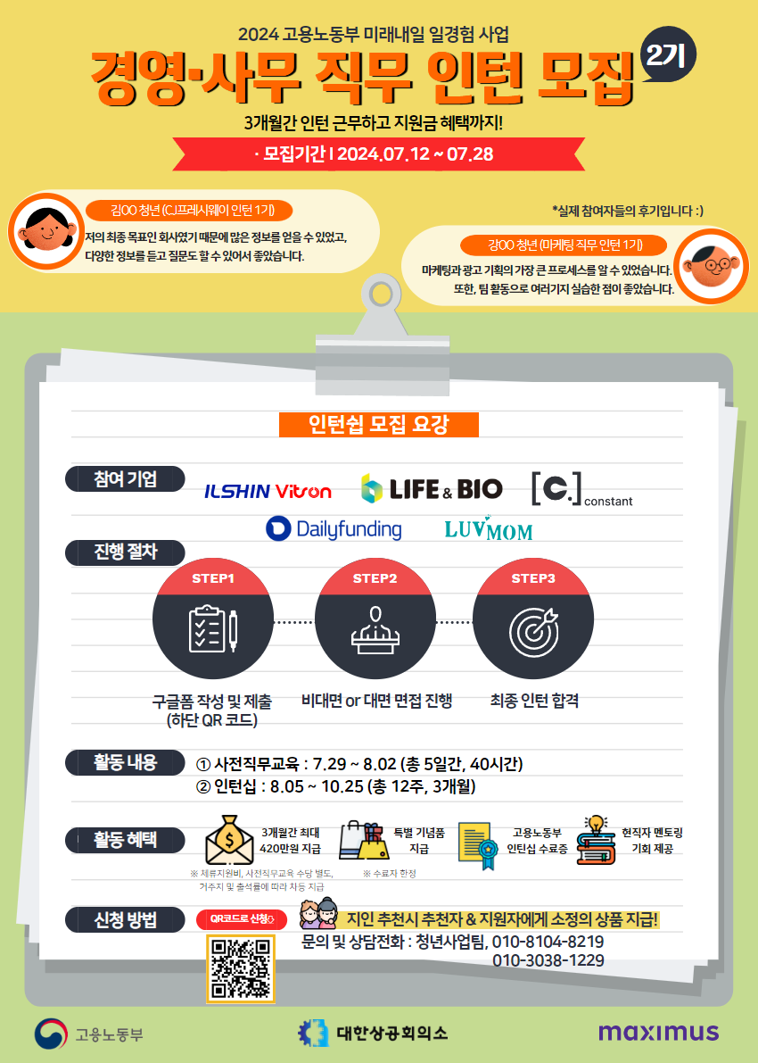 [경영사무 직무] 2024 미래내일 일경험 2기 인턴십 참여자 모집!
