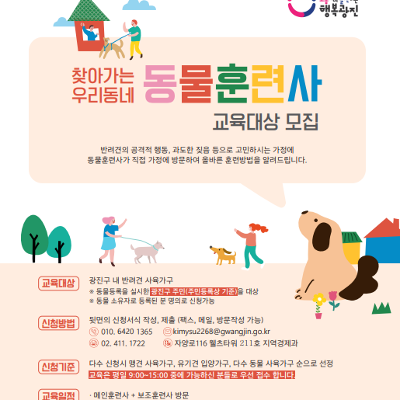 광진구 <2024년 하반기 「찾아가는 우리동네 동물훈련사」> 참여가구 모집