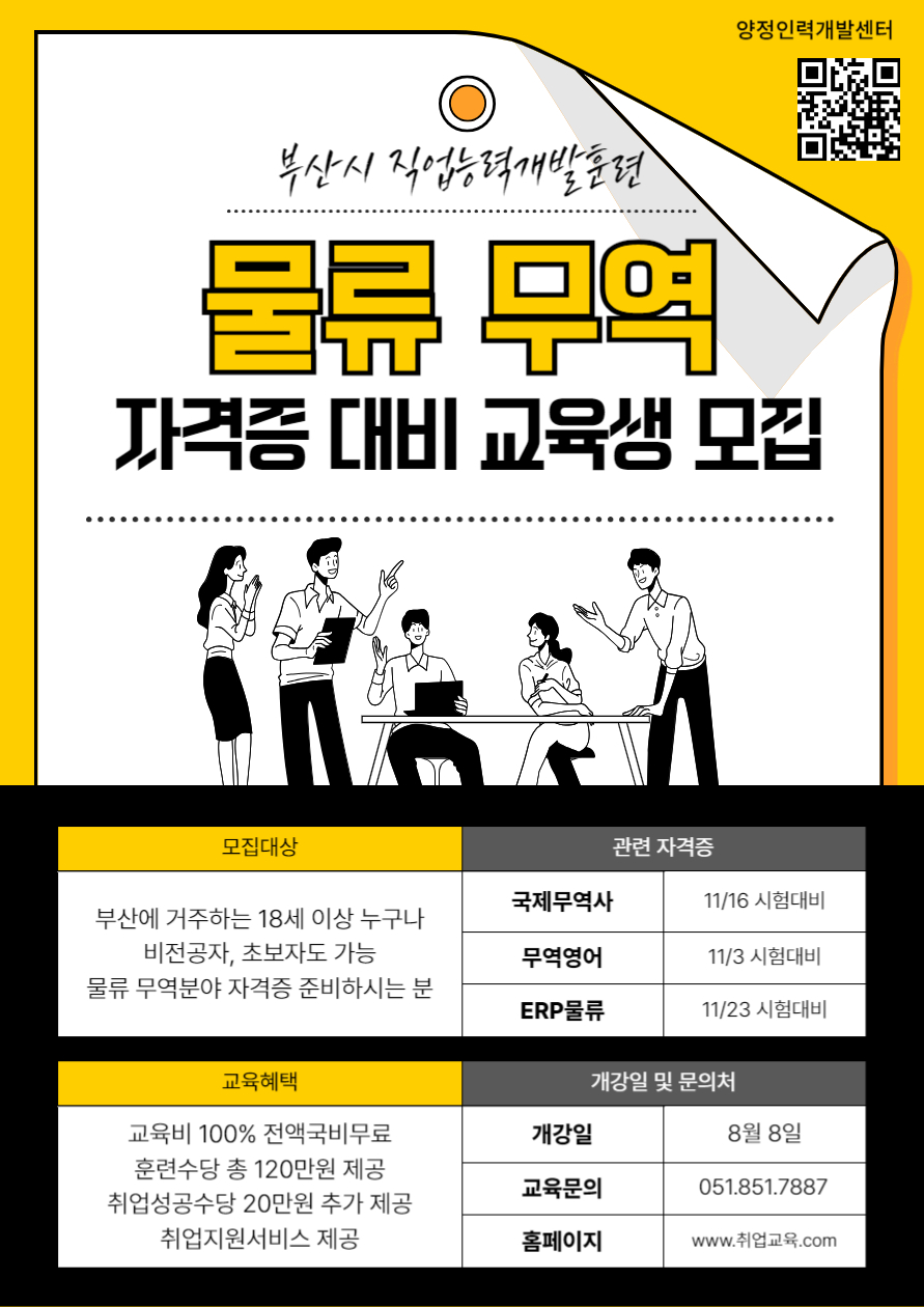 CODE:M - [전액무료] 부산광역시/ 국제무역사, 무역영어, ERP물류 자격증대비 취업교육 | 코드엠 마