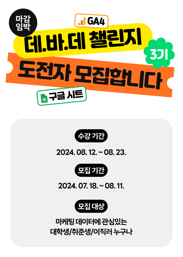 (데.바.데 챌린지 3기) GA4, 구글 시트 10일 완성 챌린지 도전자 모집