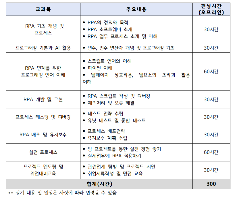 - 2024. 8. 19(월) ~ 11.1.(금) 총50일 (월~금 09:30~16:30) (1일 6h, 총 300시간) (대면교육)