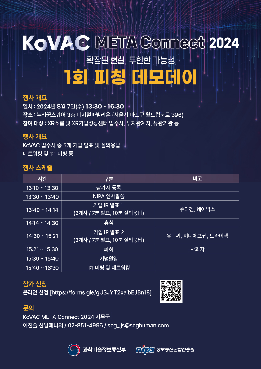- KoVAC META Connect 2024 1회 피칭 데모데이에 귀하를 초대합니다.