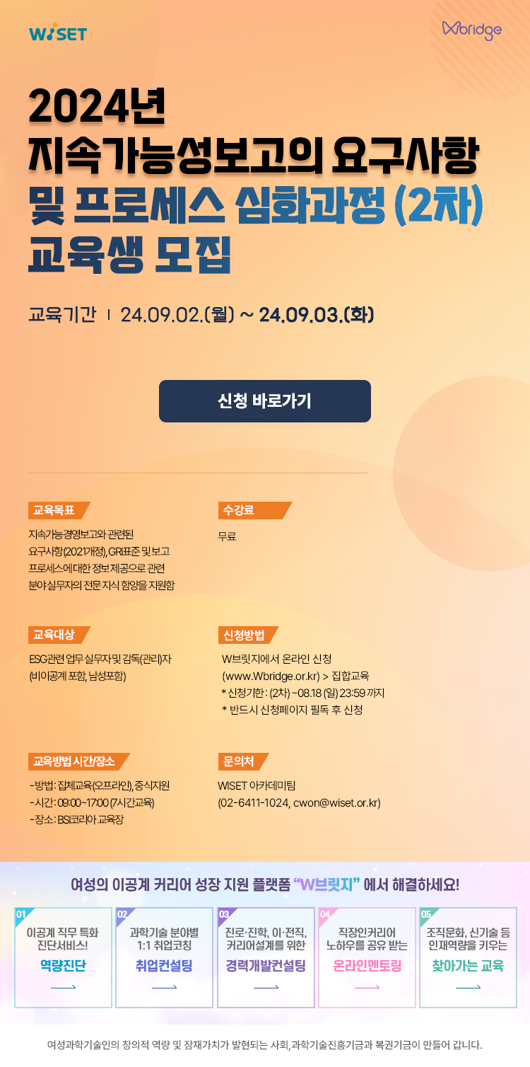 - 한국여성과학기술인육성재단(WISET)은 ESG에 대한 교육수요가 급증함에 따라,