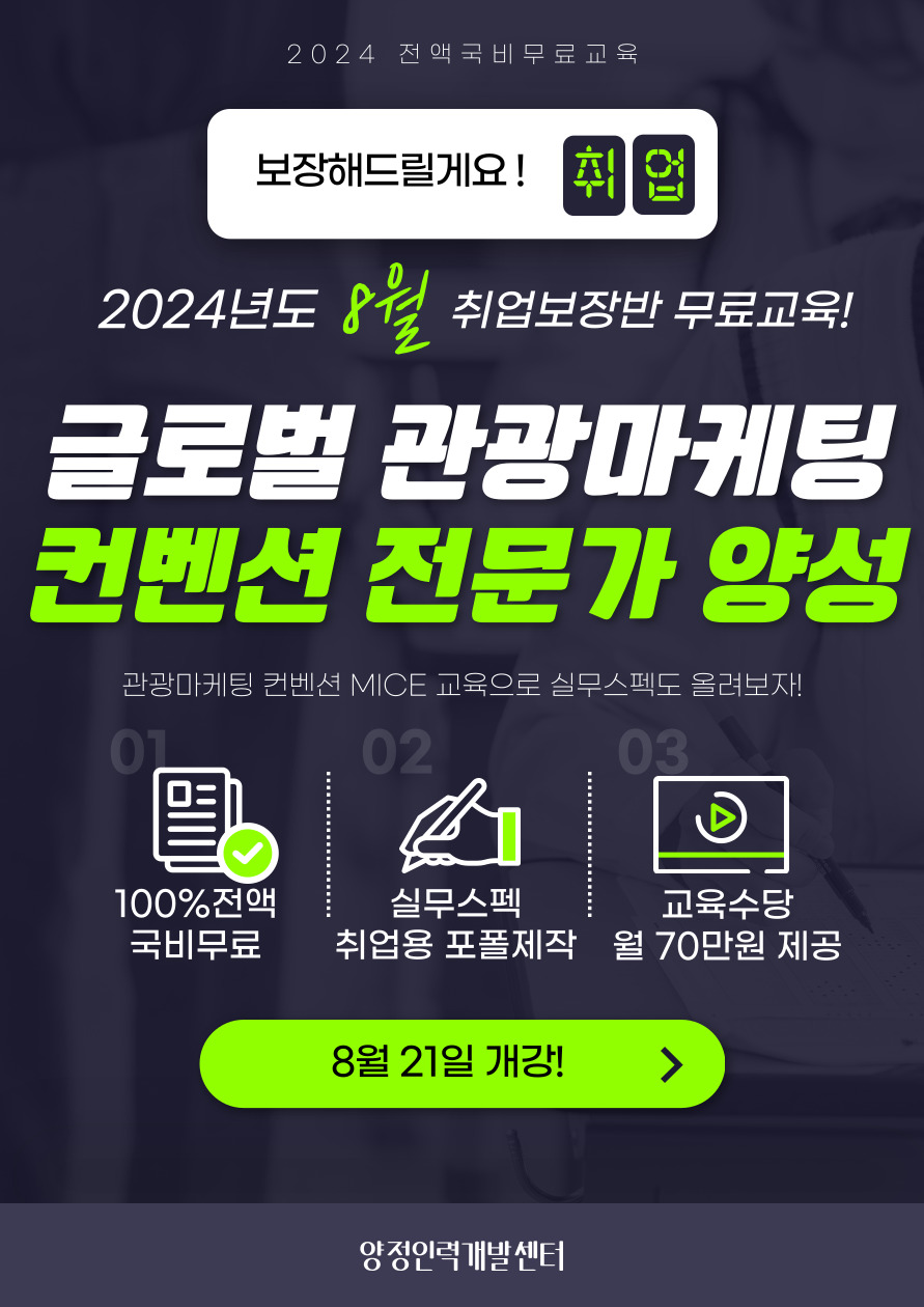 교육, 세미나 - 전액국비 관광마케팅·컨벤션·MICE 취업교육생 모집
