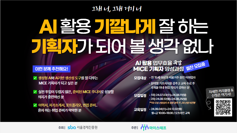 <AI 활용 업무효율 극강 MICE 기획자 양성과정>의 교육생을 모집합니다!