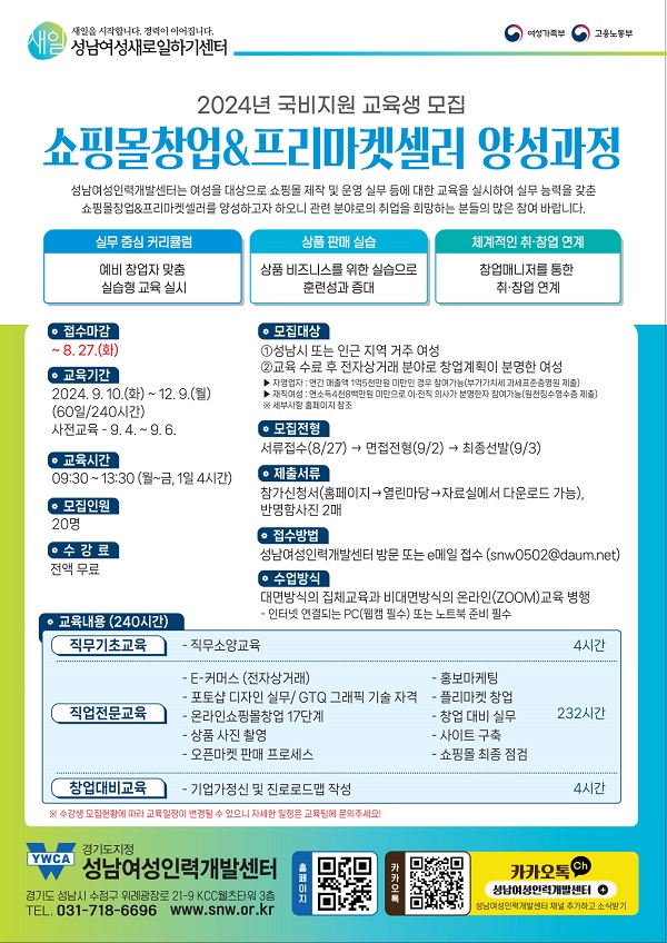 교육, 세미나 - 국비지원 쇼핑몰창업&프리마켓셀러 양성과정 교육생 모집