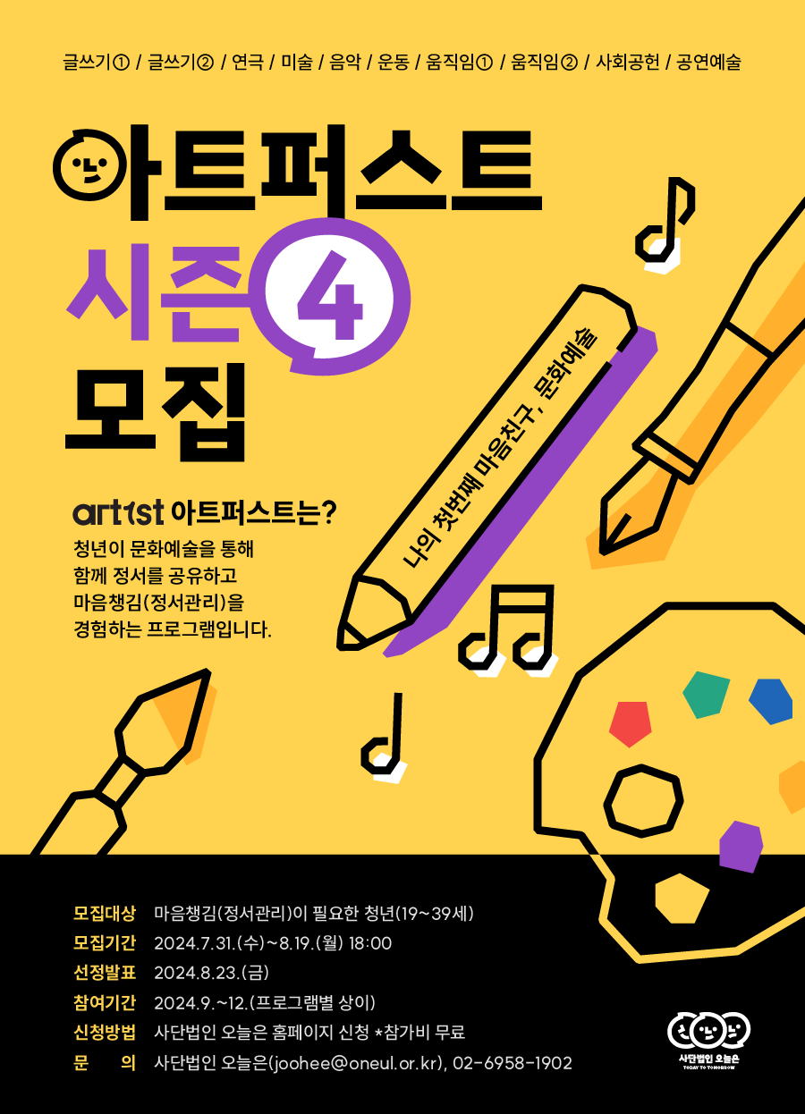 - 아트퍼스트는 청년이 문화예술을 통해 함께 정서를 공유하고