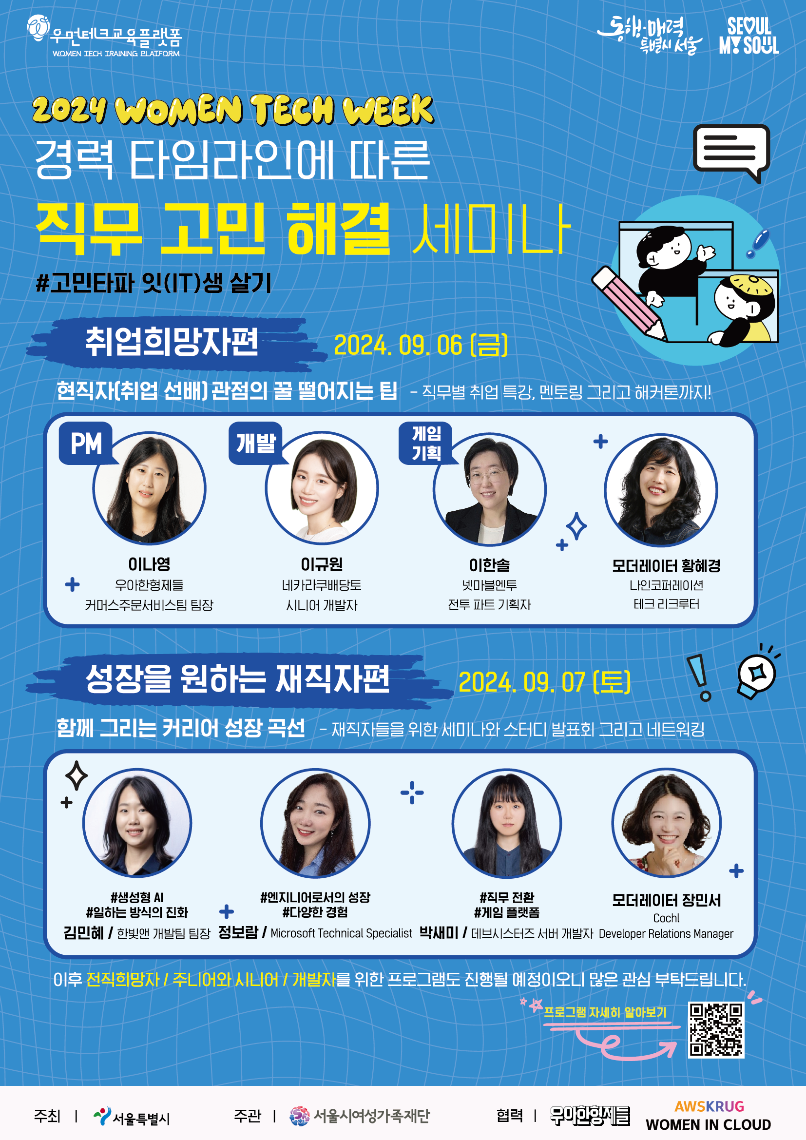 교육, 세미나 - 2024 WOMEN TECH WEEK #고민타파 잇(IT)생 살기!