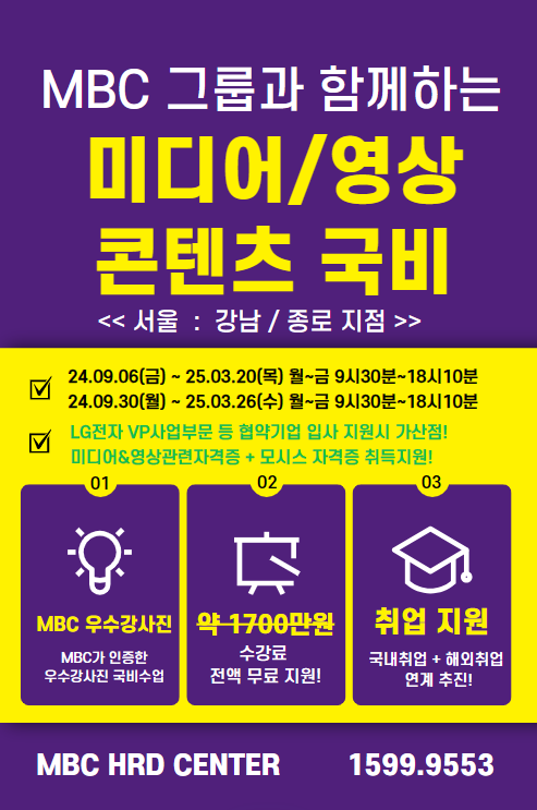 - MBC그룹이 직접 운영하며 MBC+가 인증한 최고의 강사진이 교육