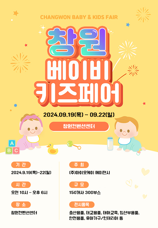 아이오케이 베이비&키즈페어(하반기) ○ 행사개요 - 창원 베이비&키즈 페어는 다양한 행사, 이벤트를 통해 출산, 육아관련…, 전시,포럼,세미나,축제정보를 마이스포털 코드엠에서 확인할 수 있