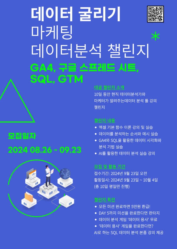데이터 굴리기 챌린지 (데.굴. 챌린지) ○ 행사개요 - 10일동안 핵심만 콕! 엑셀 기초부터 실무까지 구글시트와 GA4를 이용…, 전시,포럼,세미나,축제정보를 마이스포털 코드엠에서 확인할 수 있습