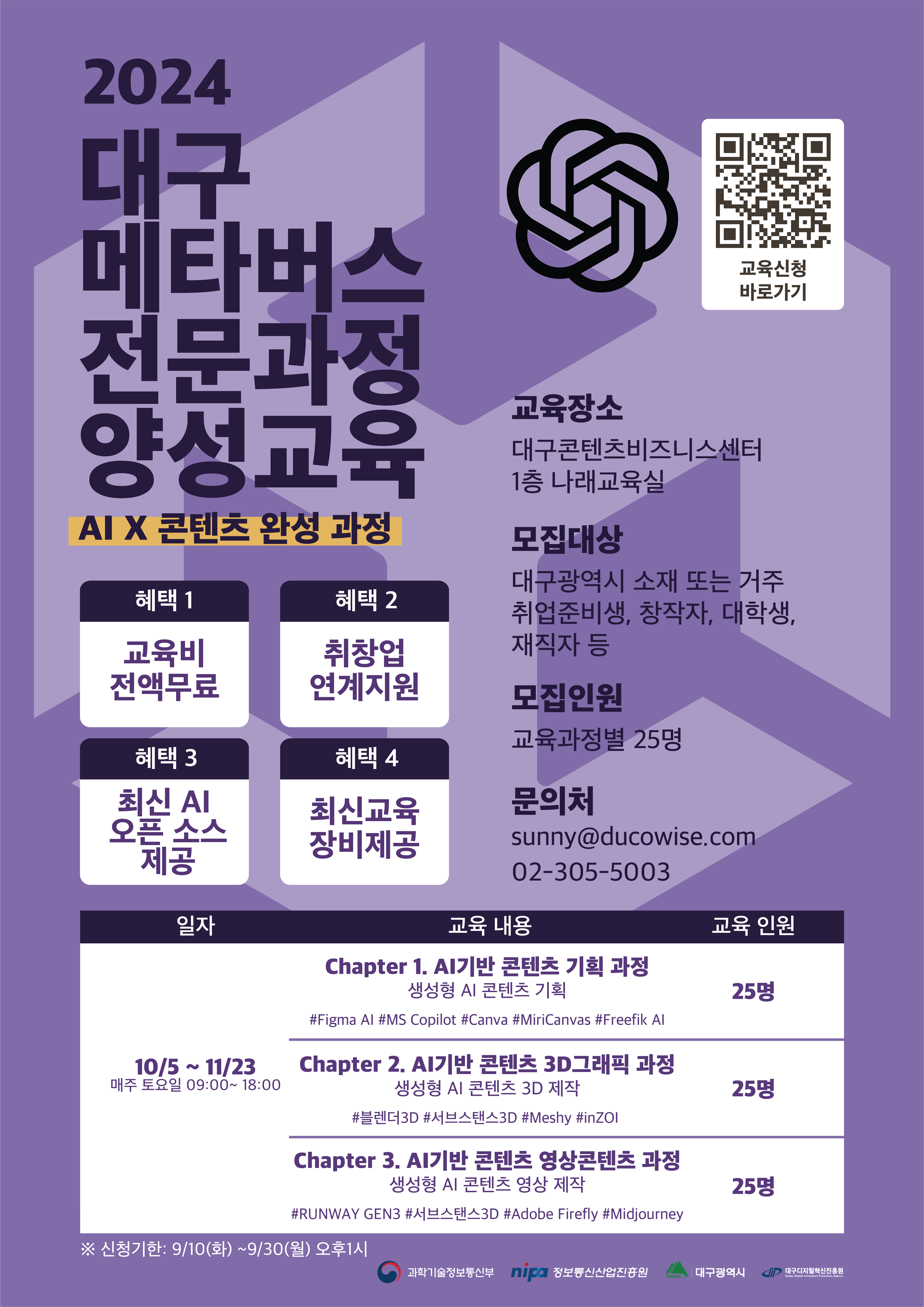 기타 마이스소식사이트 2024 대구 메타버스 전문과정 양성교육 [AI 콘텐츠 완성 과정 in Metacity Daegu]