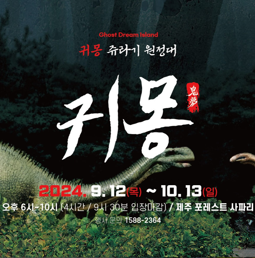 귀몽 ○ 행사개요 - 제주 지박령이 포레스트 공룡사파리에서 깨어났다. 제주의 지박령과 더불어 밤이되면 깨어나는 공룡들까지, 제주…, 전시,포럼,세미나,축제정보를 마이스포털 코