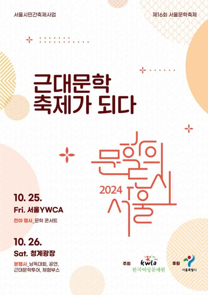 - 서울시가 후원하고 한국여성문예원이 주관·주최하는 제16회 서울문학축제 ‘2024 문학의