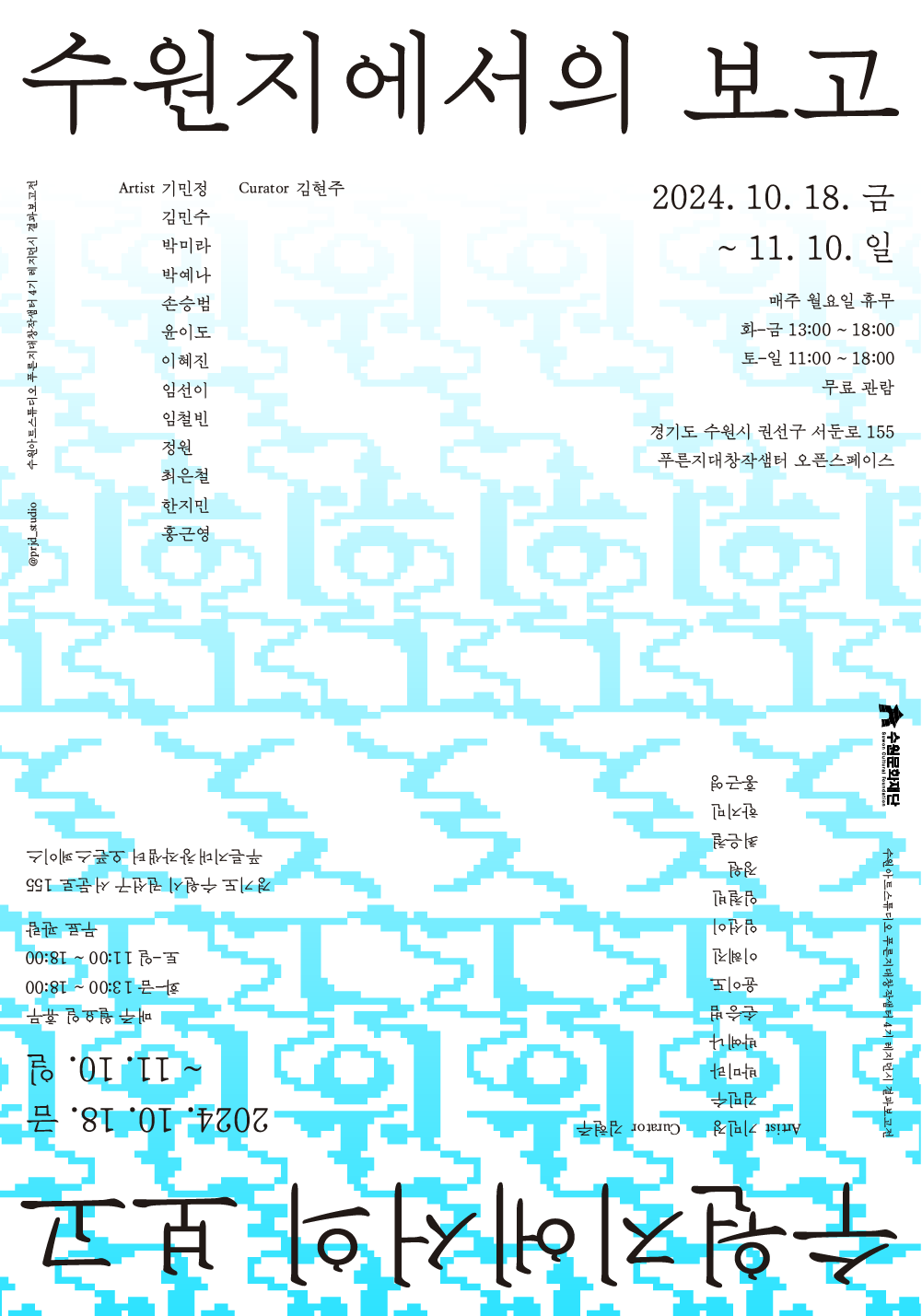 - <수원지에서의 보고>는 수원아트스튜디오 푸른지대창작샘터 4기 참여작가 13인의