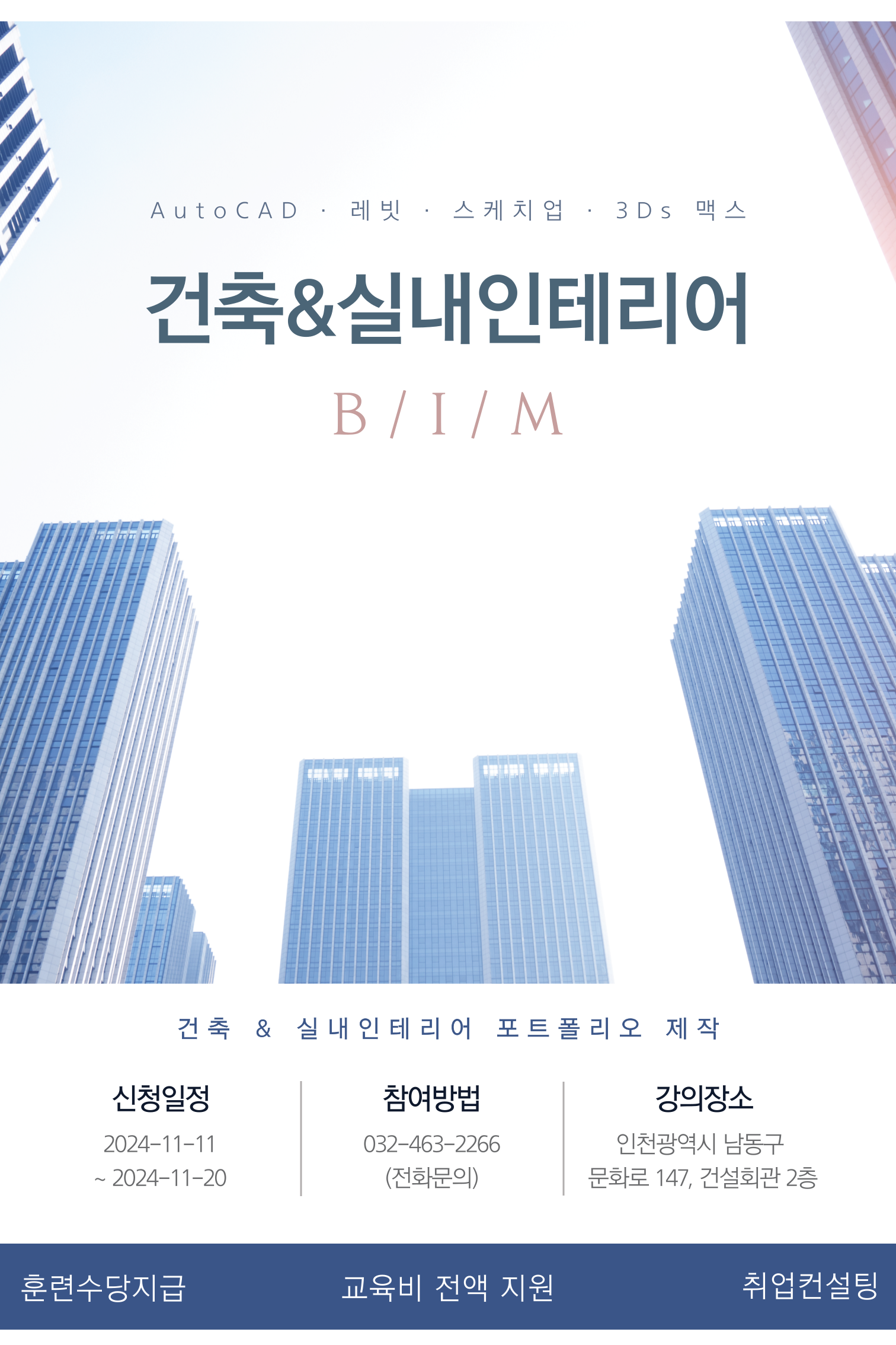 [BIM]건축&실내인테리어 실무양성 프로젝트 3기 교육생 모집 (전액국비,취업연계과정)