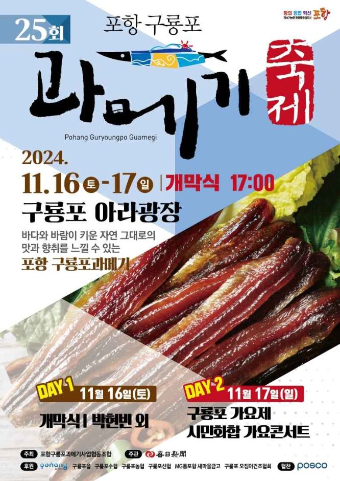 - 포항 구룡포 과메기 축제는 올해로 25번째를 맞는 전통이 있는 축제이다. 찬바람이 불어오기