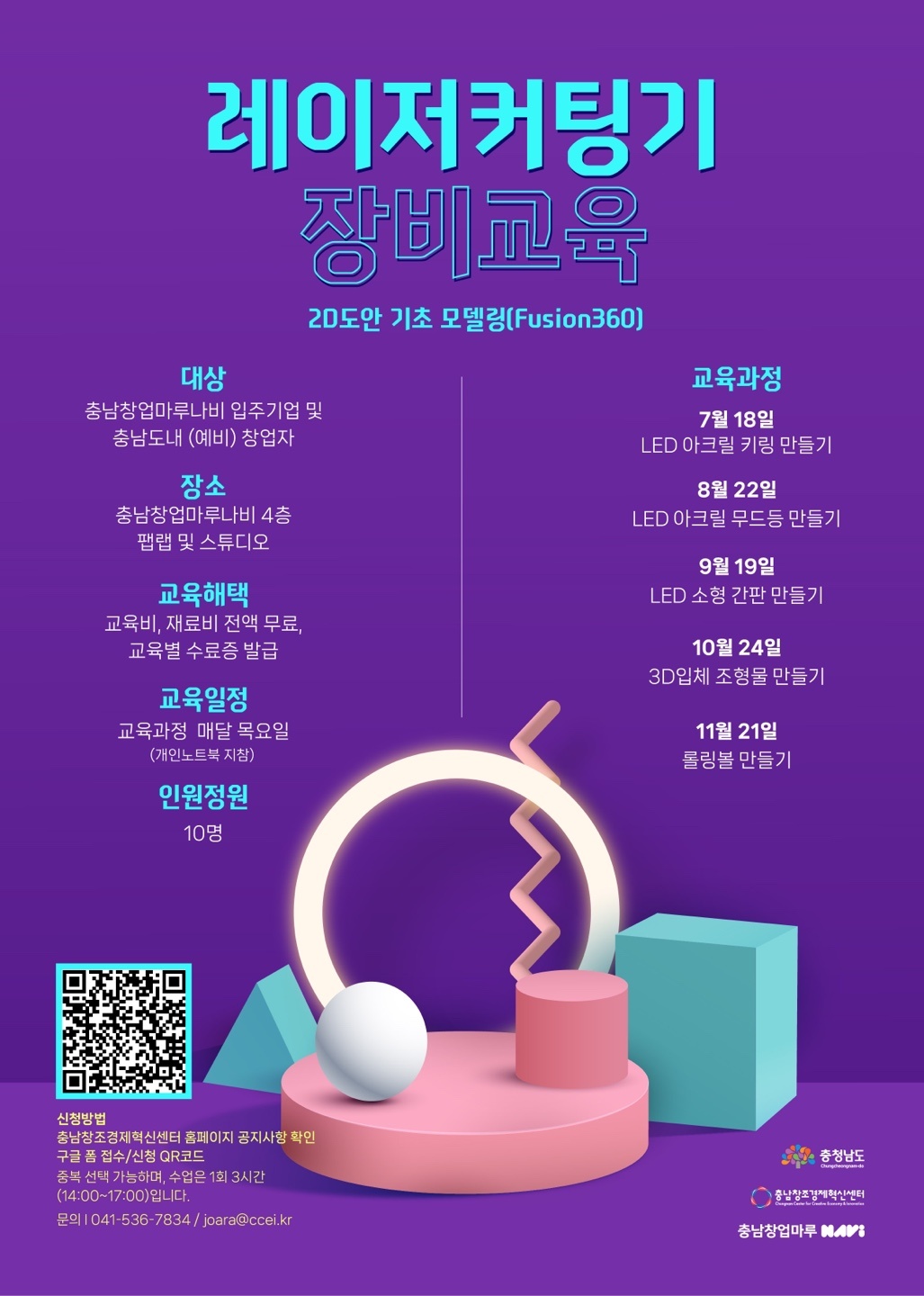- 대상 : 충남 창업마루나비 입주기업 및 충남도내 (예비)창업자 10명