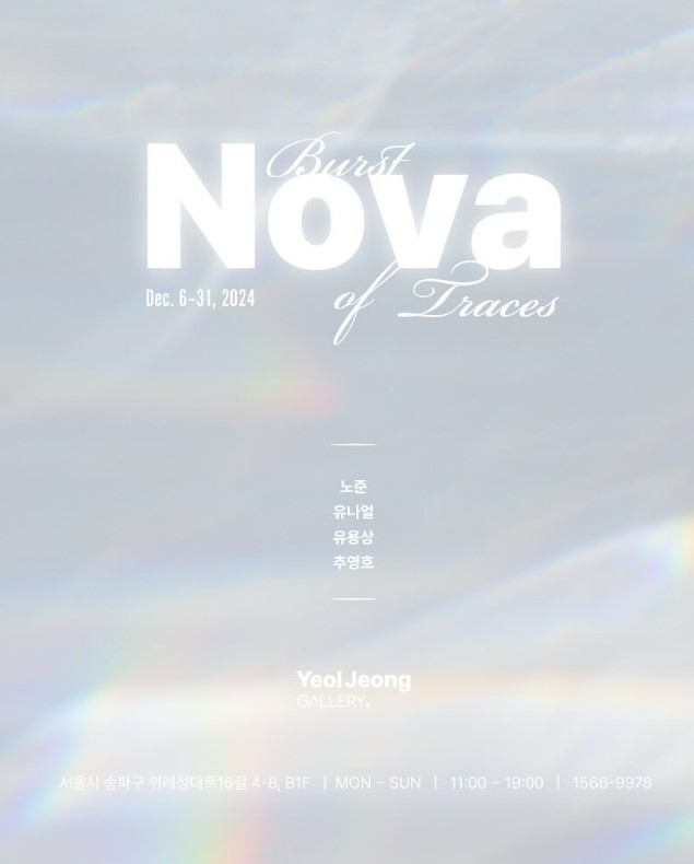 Nova: Burst of Traces ○ 행사개요 - 열정갤러리에서 노준, 유나얼, 유용상, 추영호 네 명의 작가님들의 <Nova…, 전시,포럼,세미나,축제정보를 마이스포털 코드엠에서 확인할 수 있습니다. 마이스포털