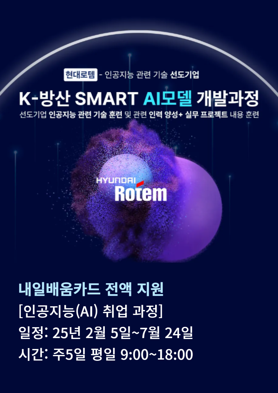 - 본 과정은 현대로템이 주관하는 K-디지털 트레이닝 디지털 선도기업 아카데미입니다.