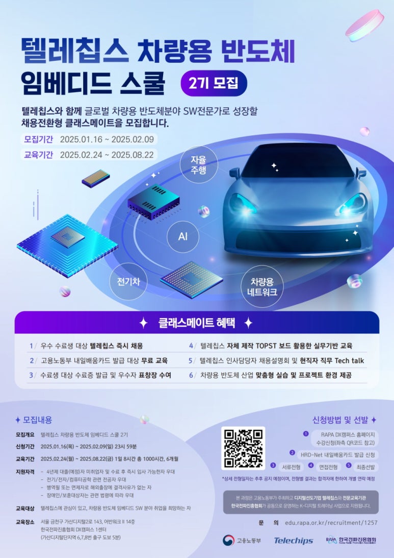 - <텔레칩스 차량용 반도체 임베디드 스쿨>은 글로벌 차량용 반도체 혁신 기업 텔레칩스와 함께