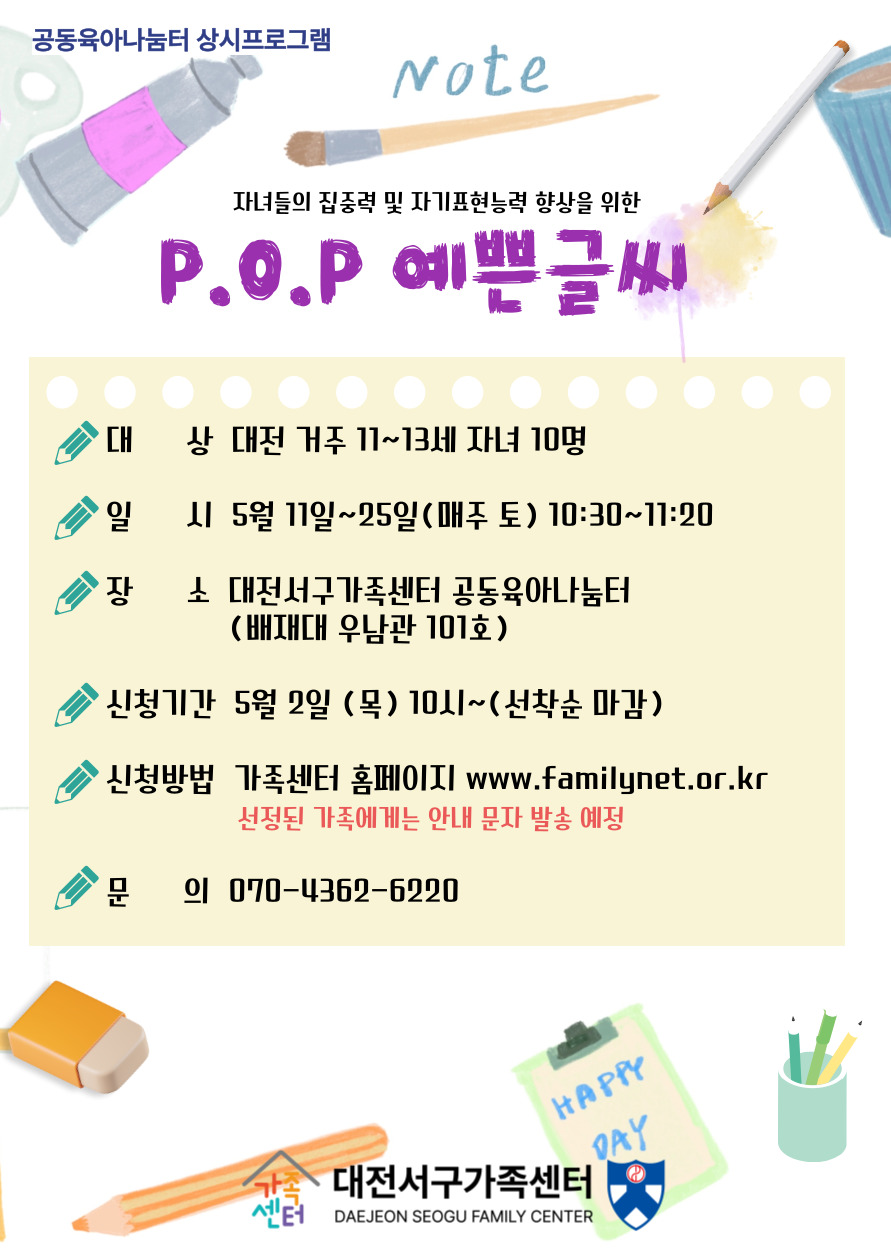 기타 마이스소식 대전서구가족센터 P.O.P 예쁜글씨