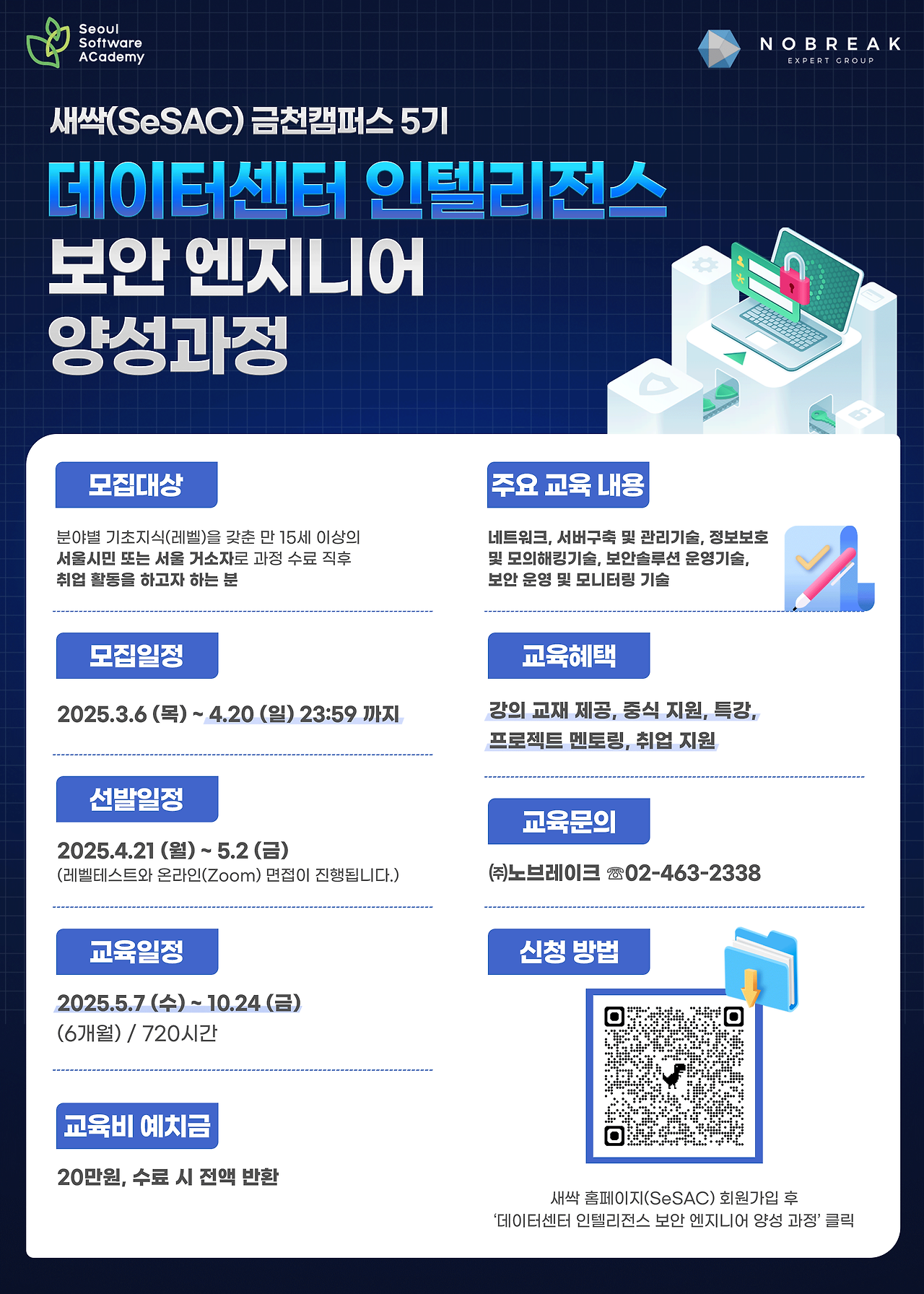 청년취업사관학교 새싹(SeSAC) 금천5기 <데이터센터 인텔리전스 보안 엔지니어 양성 과정>