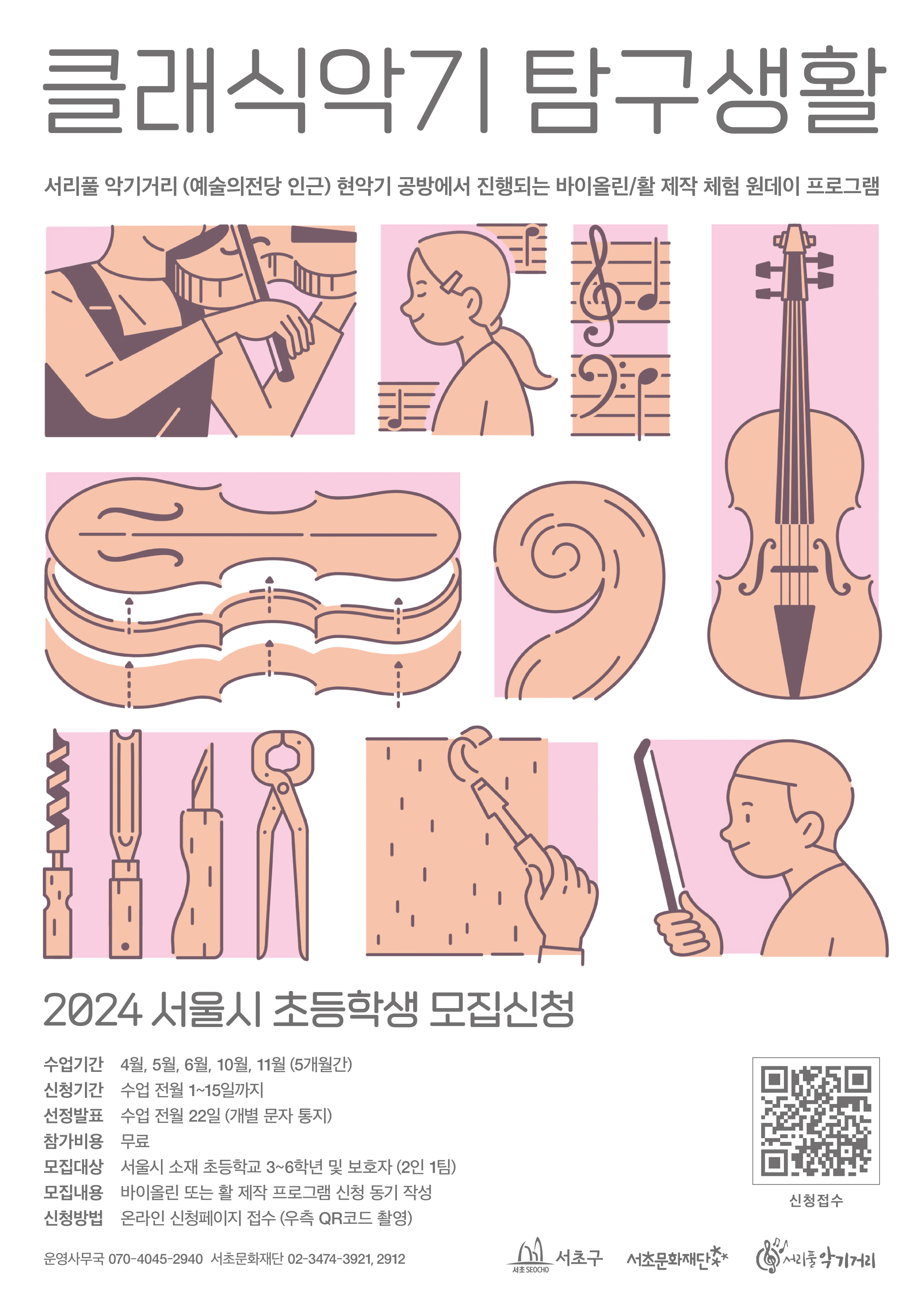 2024 클래식악기 탐구생활 6월 신청자 모집 ○ 교육개요 - 서리풀 악기거리 내에 악기공방에서 악기를 만들어보는 체험형 음악교…, 전시,포럼,세미나,축제정보를 마이스포털 코드엠에서 확인할
