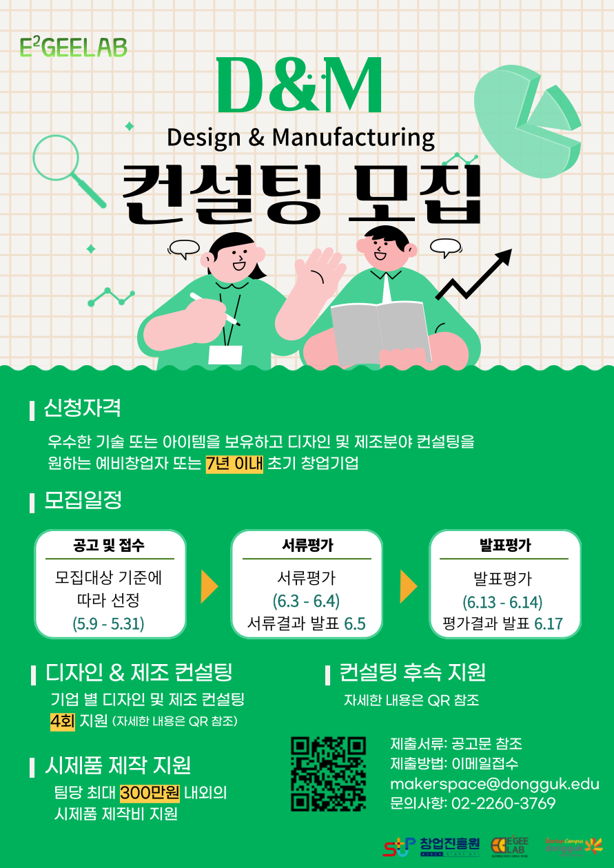 지원사업, 기타 - E²GEE Lab D&M(디자인&제조) 컨설팅 참가자 모집