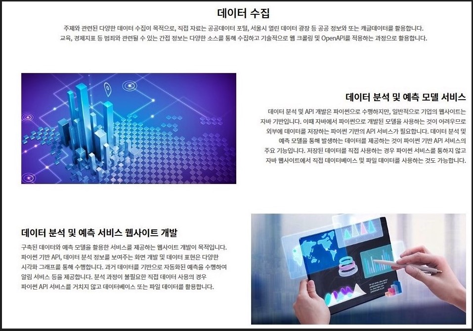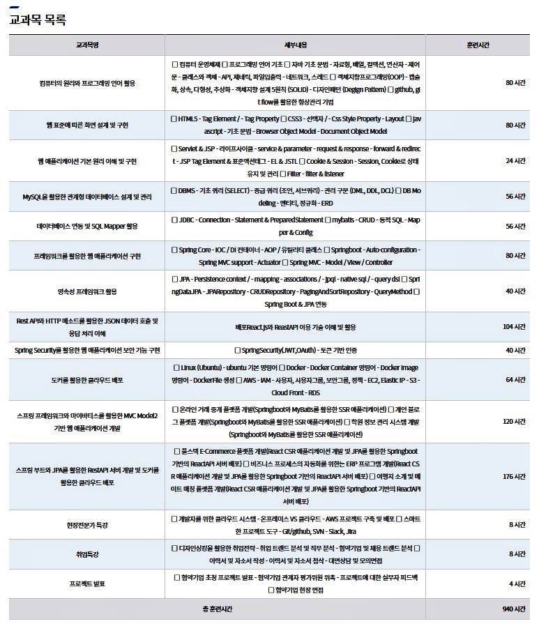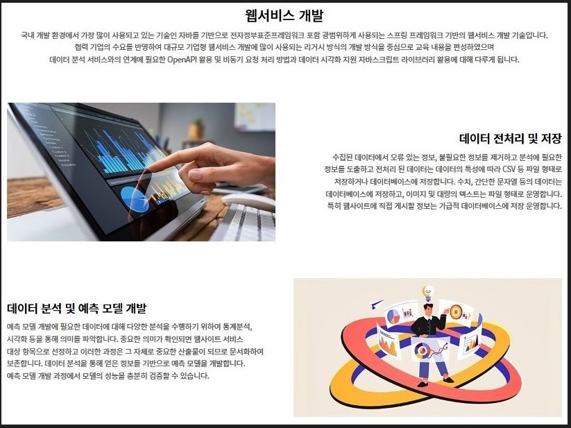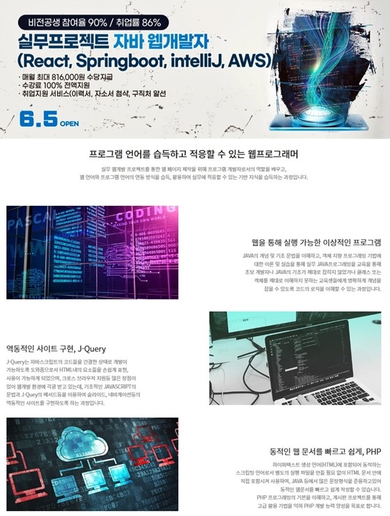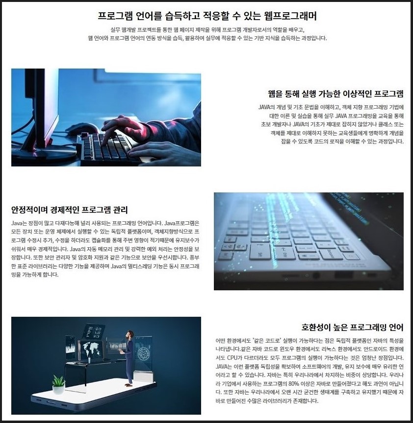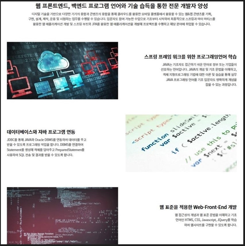 - 웹 프론트엔드, 백엔드 프로그램 언어와 기술 습득을 통한 전문 개발자 양성