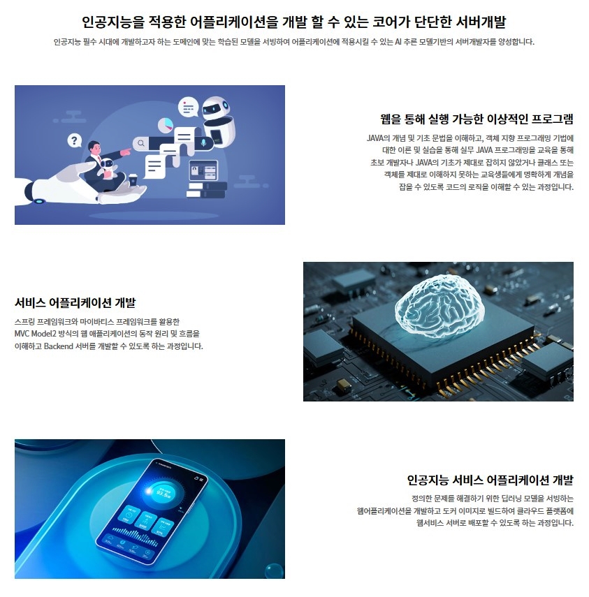 - 웹 프론트엔드, 백엔드 프로그램 언어와 기술 습득을 통한 전문 개발자 양성
