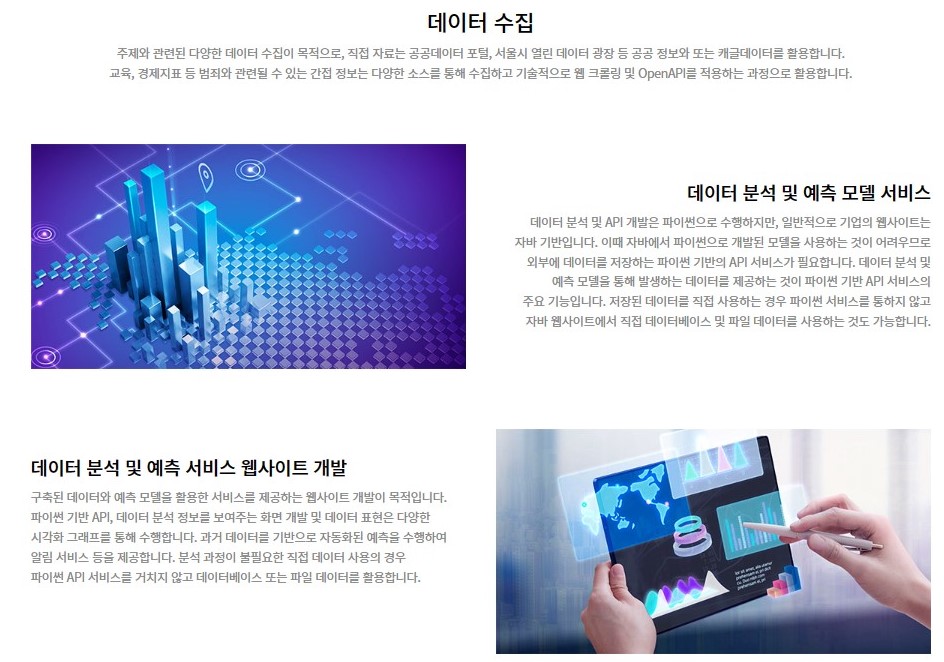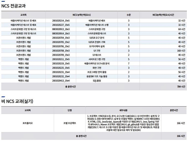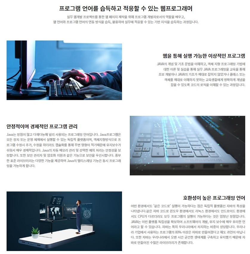- 웹 프론트엔드, 백엔드 프로그램 언어와 기술 습득을 통한 전문 개발자 양성