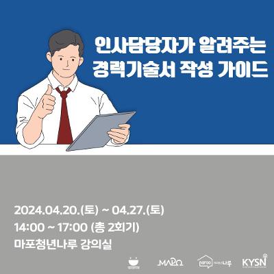 마포청년나루 <인사담당자가 알려주는 경력기술서 작성 가이드> ○ 교육개요 - [취업특강] 인사담당자가 알려주는 경력기술서 작…, 전시,포럼,세미나,축제정보를 마이스포털 코드엠에서 확인