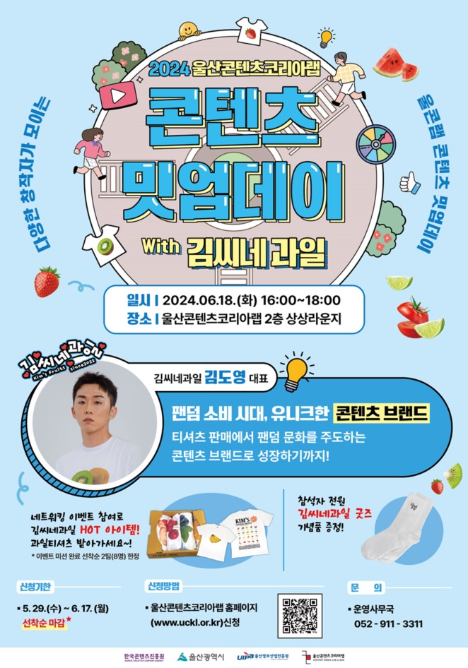 2024 콘텐츠 밋업데이 ○ 행사개요 - 팬덤 소비 시대, 유니크한 콘텐츠 브랜드 김씨네과일???? 김도영 대표님과 함께하는 특…, 전시,포럼,세미나,축제정보를 마이스포털 코드엠에서 확인할 수 있