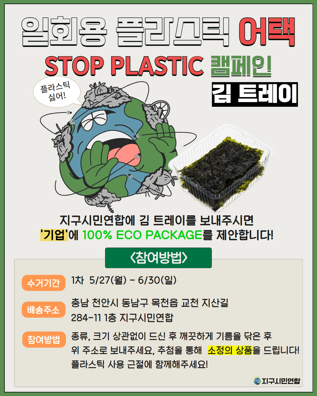 - '쓰레기를 구매하지 않을 권리' 일회용 플락스틱 김트레이