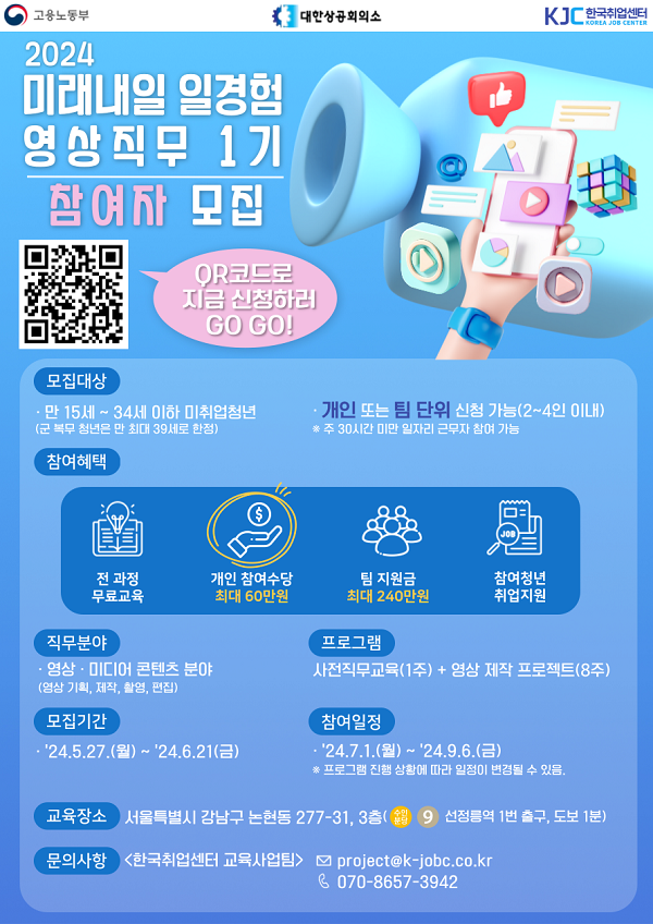 CODE:M - [한국취업센터] 2024년 미래내일 일경험(프로젝트형) 영상직무 1기 참여청년 모집 | 코드엠