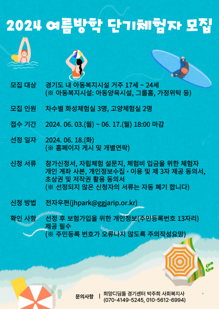 2024년 여름방학 단기체험자 모집안내(화성, 고양)