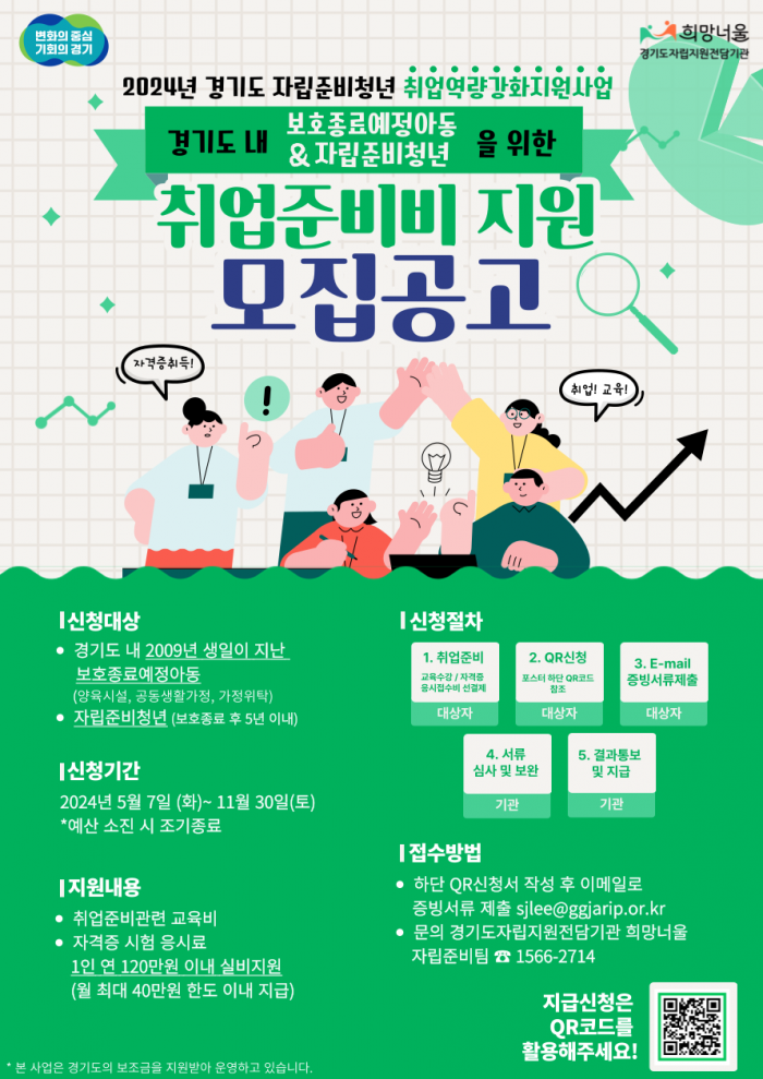 - 대상 : 경기도 내 2009년 생일이 지난 보호종료예정아동 및 자립준비청년