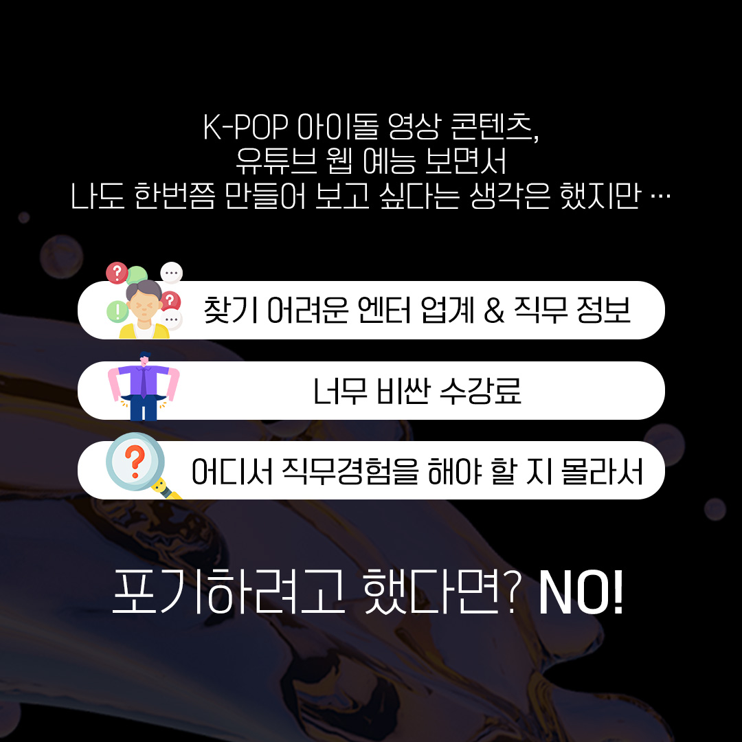- ② 최고의 강사진: 전 JYP, SM 영상 제작 담당, 유명 프로덕션 현직자로 구성