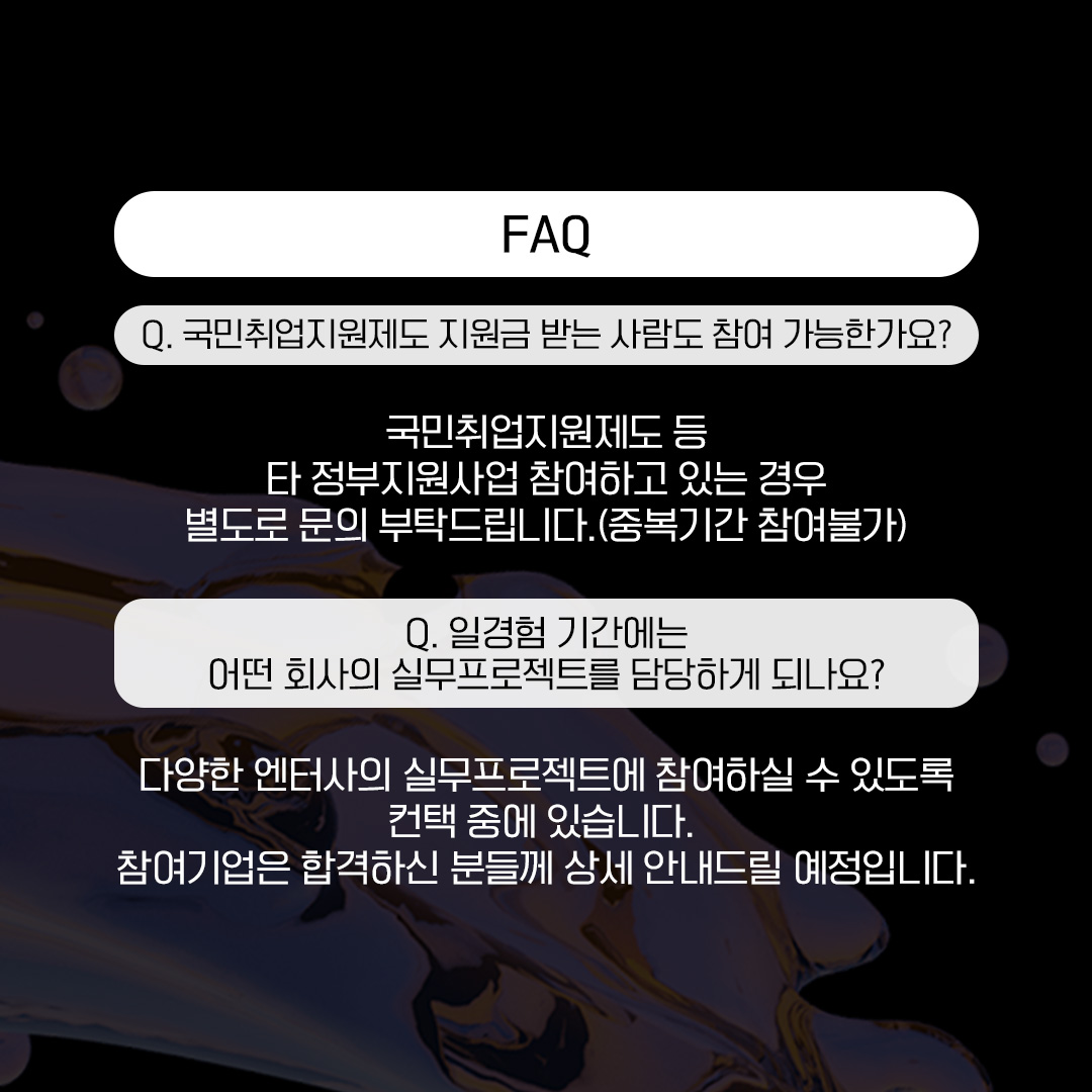 - ④ 엔터사+유명 웹예능 제작사 실무 프로젝트 참여 기회 제공