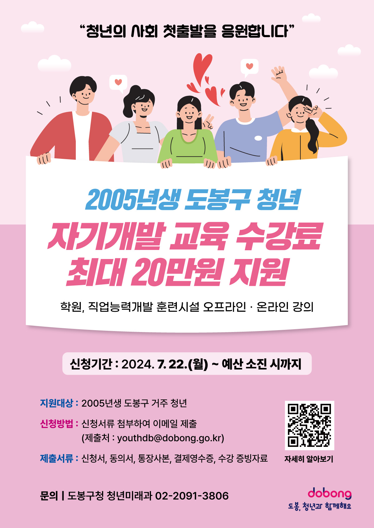 도봉구청 <2005년생 도봉구 청년 자기개발 교육 수강료 지원> 신청 안내