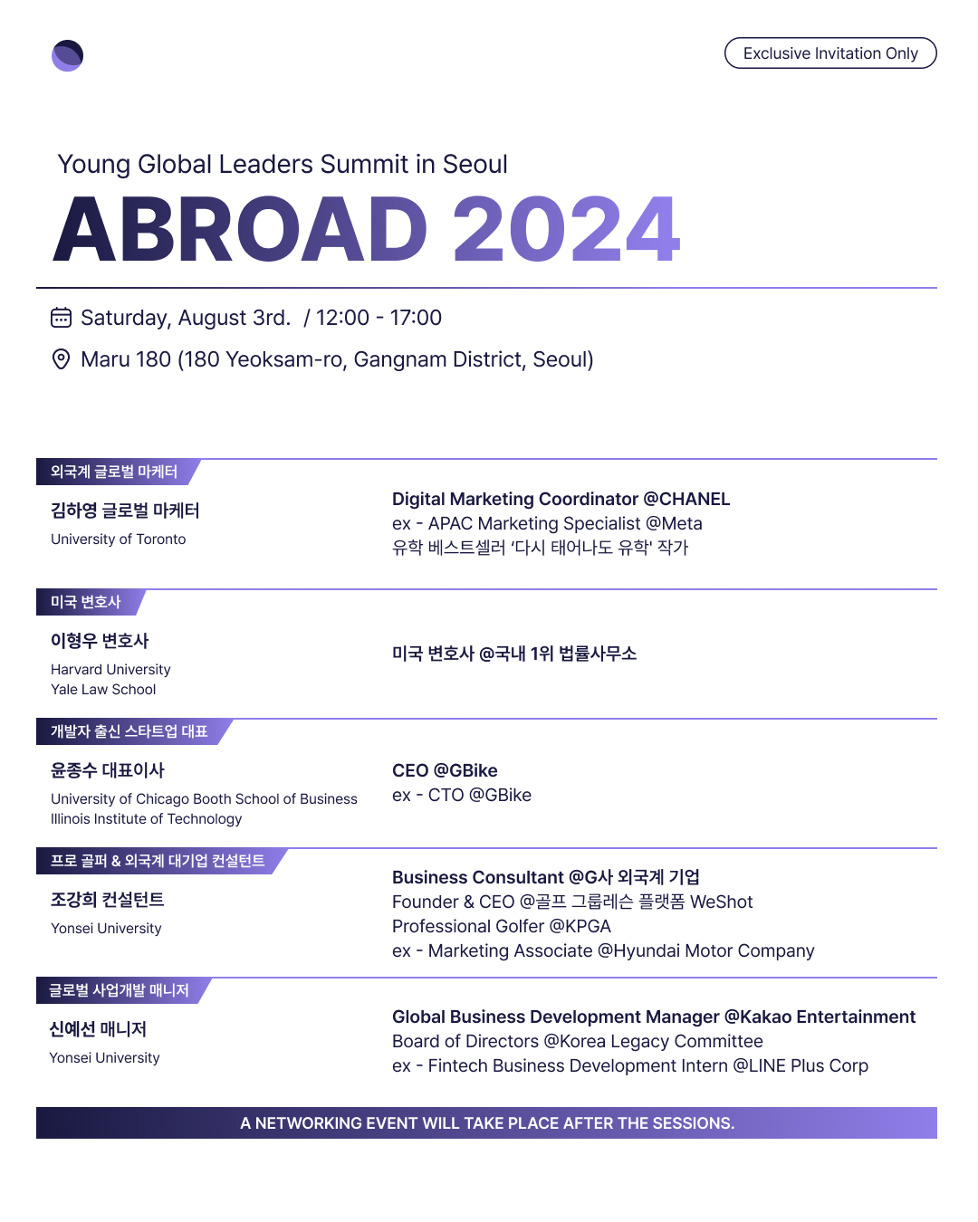 - 차세대 글로벌 리더를 꿈꾸는 20대 청년들을 위한 행사입니다.