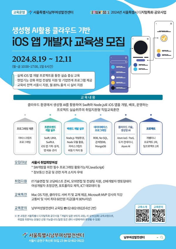 카테고리 없음 기타 마이스소식사이트 생성형 AI활용 클라우드 기반 iOS 앱 개발자 마이스포털 코드엠 2024. 7. 26. 04:40 https://www.code-m.kr/mice/post/11506 CODE:M - 생성형 AI활용 클라우드 기반 iOS 앱 개발자 | 코드엠 마이스 | 마이스포털 CODE:M 생성형 AI활용 클라우드 기반 iOS 앱 개발자 ○ 교육개요 - 클라우드 환경에서 생성형 AI를 활용하여 React.js와 Node.js…, 전시,포럼,세미나,축제정보를 마이스포털 코드엠에서 확인할 수 있습니다. code-m.kr