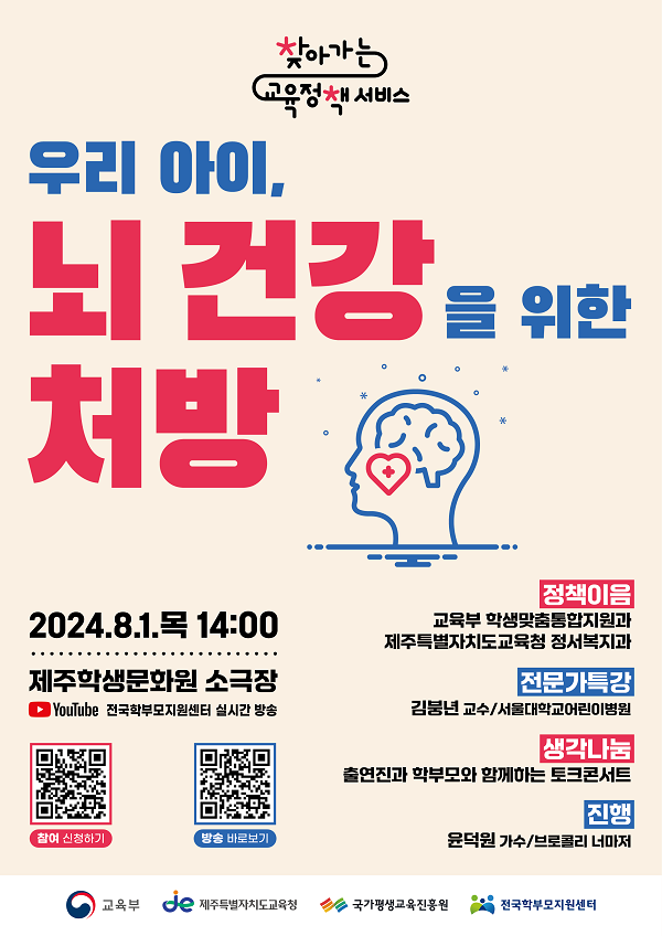 2024년 찾아가는 교육정책 서비스 ○ 행사개요 - 우리 아이, 뇌 건강을 위한 처방전 ○ 행사일정 및 장소 - 행사 일정 : 20…, 전시,포럼,세미나,축제정보를 마이스포털 코드엠에서 확인할 수 있습