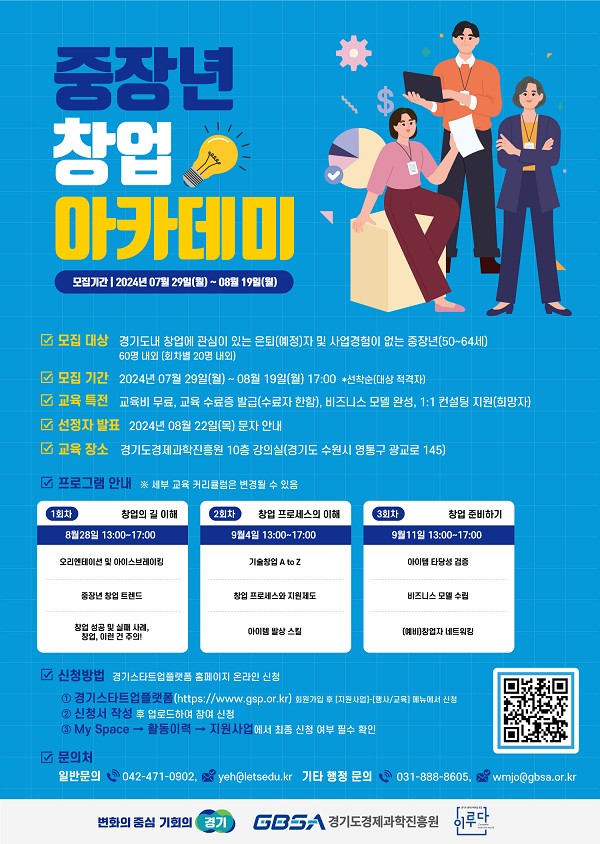 교육, 세미나 - [경기도경제과학진흥원] 중장년 창업 아카데미 참여자 모집
