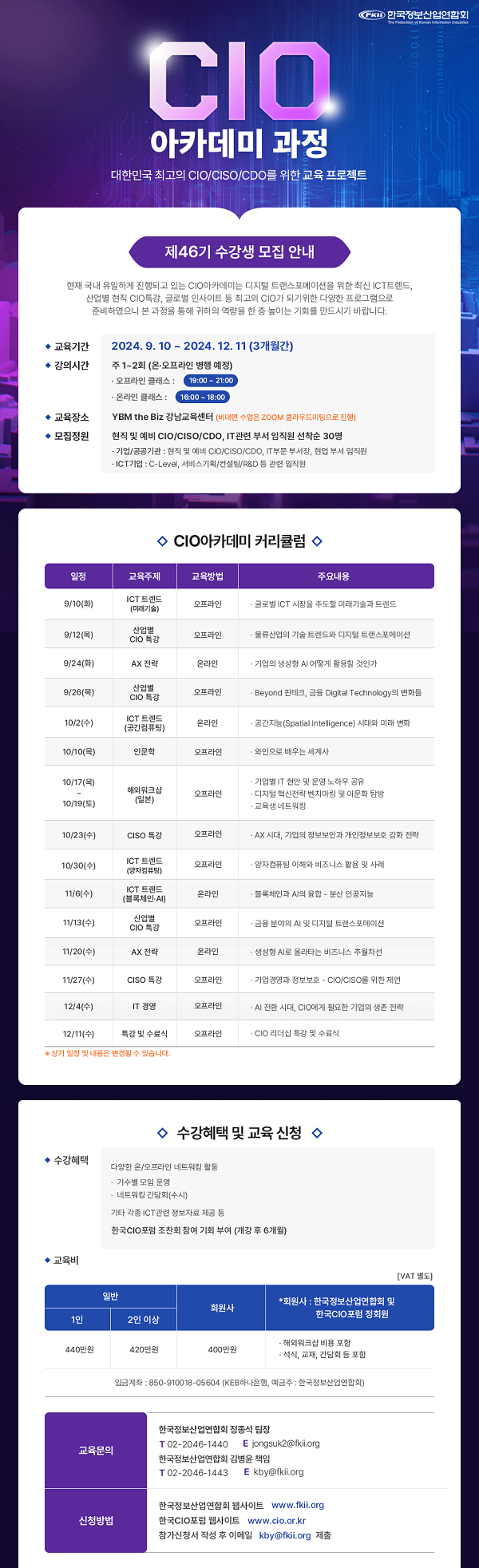 교육, 세미나 - CIO 아카데미 제 46기 수강생 모집 안내