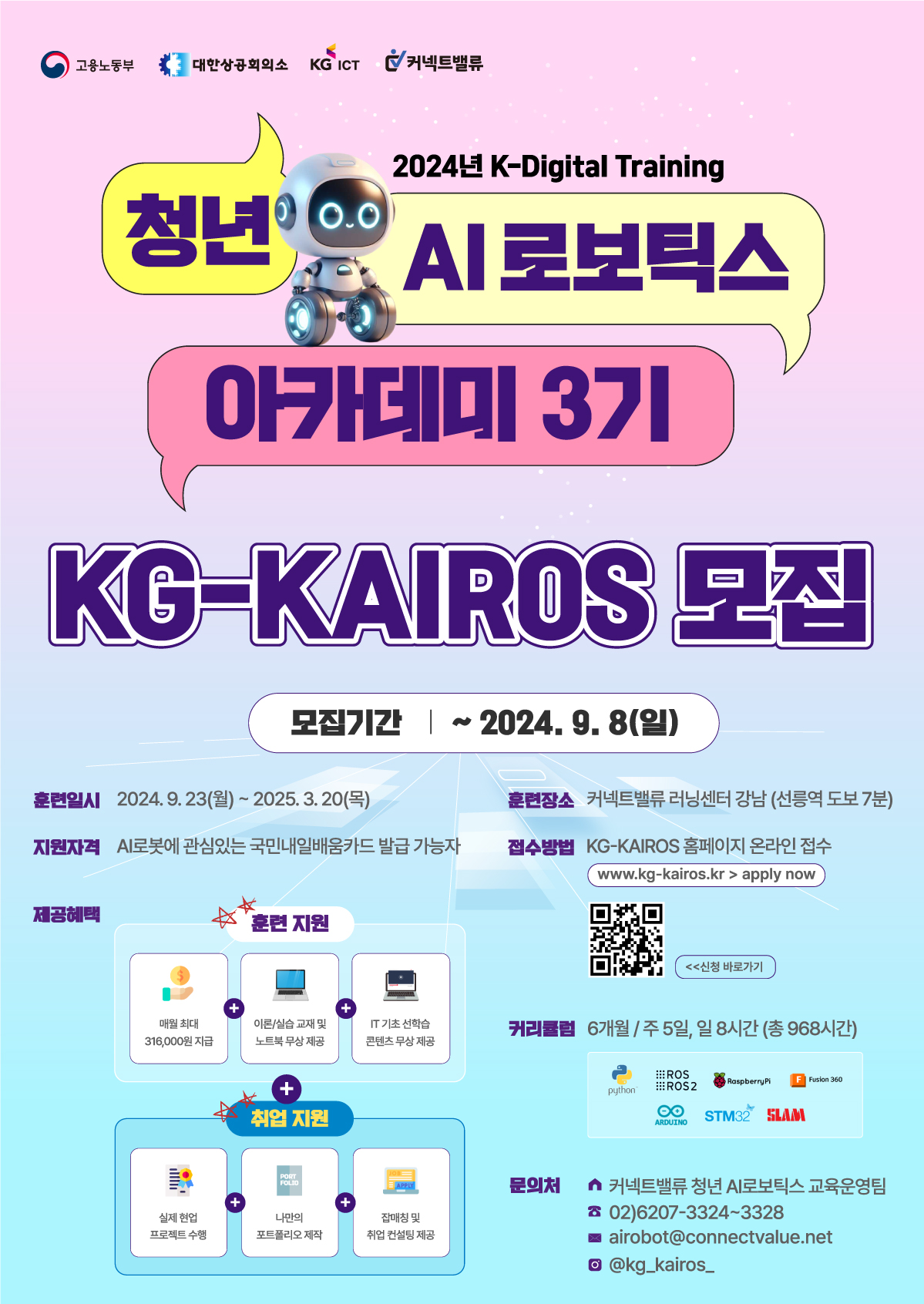 - KG ICT와 고용노동부가 함께하는 청년 AI 로보틱스 실무인재양성 프로그램으로
