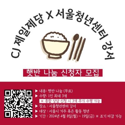 식품 꾸러미를 제공합니다. 이에 3~4월 동안 '햇반 나눔'을 진행합니다. 청년 분들의 많은 관심과