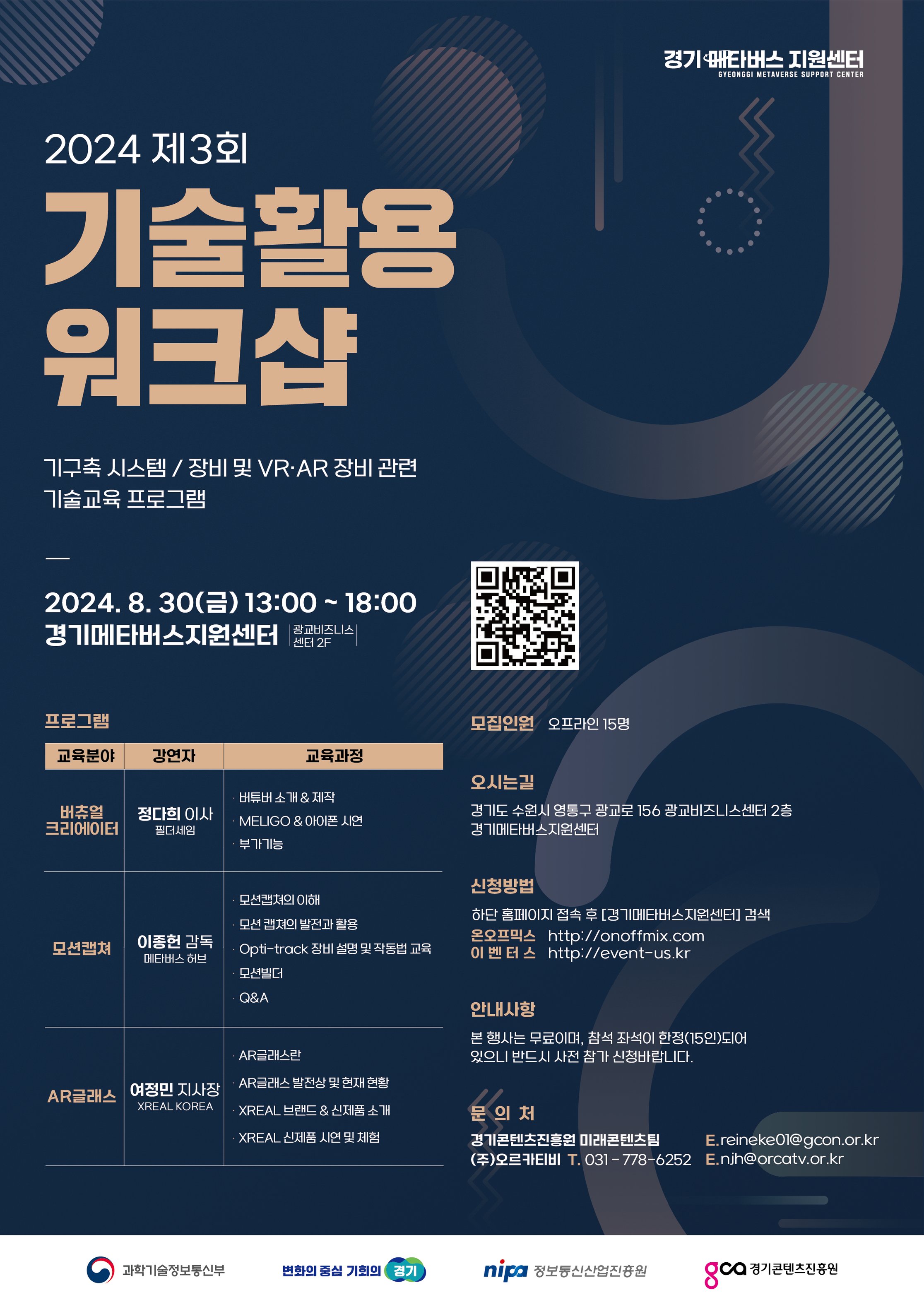 2024년 제3회 경기메타버스지원센터 기술활용 워크샵 ○ 행사개요 - 안녕하세요! [기구축 시스템/장비 활용 기술교육]을 위해 제…, 전시,포럼,세미나,축제정보를 마이스포털 코드엠에서