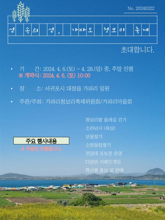 CODE:M - 제13회 가파도청보리축제 | 코드엠 마이스 | 마이스포털 CODE:M